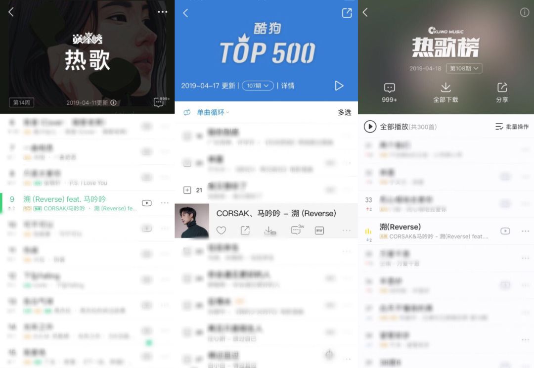 截止到目前,CORSAK的《溯 Reverse》已经在全球音乐流媒体平台积累了总计4.5亿播放量的疯狂数据,其中少不了大量明星在微博等渠道分享、支持作为撑腰。同时《溯 Reverse》又在腾讯音乐娱乐集团旗下QQ音乐、酷狗音乐、酷我音乐三大平台的榜单中跻身前50,于HIT.FM推出的中国电子音乐巅峰榜位居第二。