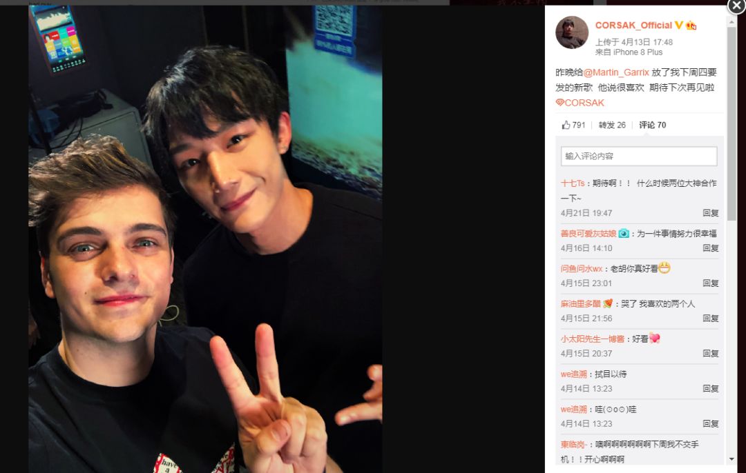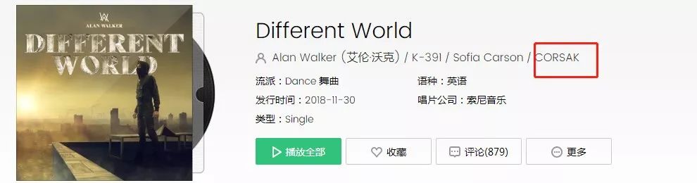 除去上述两首个人作品以外,细心的朋友们不难发现,CORSAK还是Alan Walker脍炙人口的EDM歌曲《Different World》的制作人之一。CORSAK由此成为与Alan Walker合作过的中国DJ/制作人。