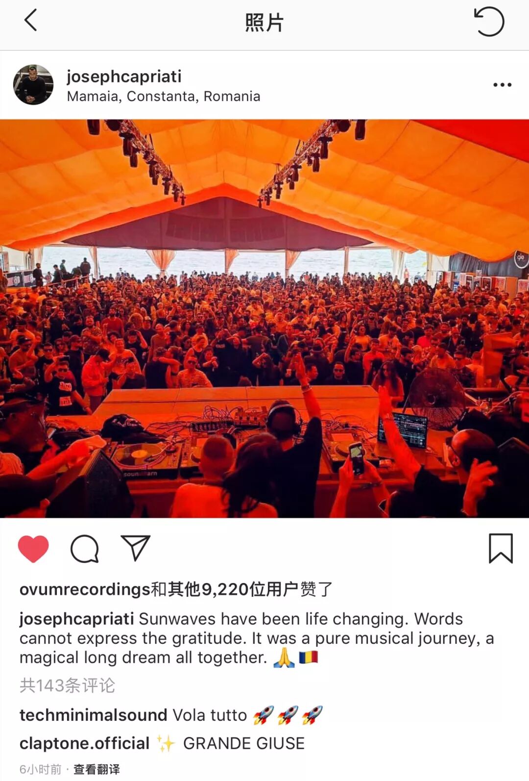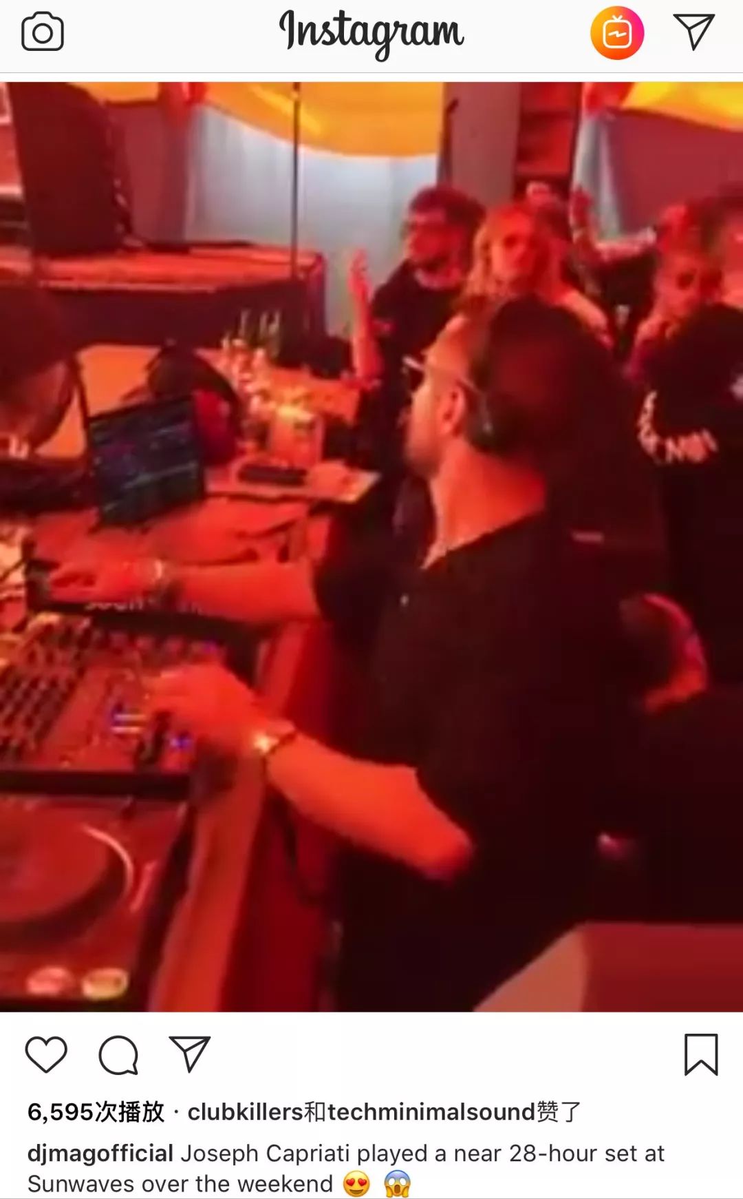 撰文的昨天、发布的前天,Joseph Capriati在Sunwaves音乐节上完成了一起近28小时的打碟表演,这对于Techno DJ而言是一起光荣的战绩,具体的表演时间为27小时40分钟,突破Sunwaves音乐节耐力测试的最高纪录。此前Sunwaves音乐节的最高纪录为Dubfire打下的26小时30分钟的好成绩。