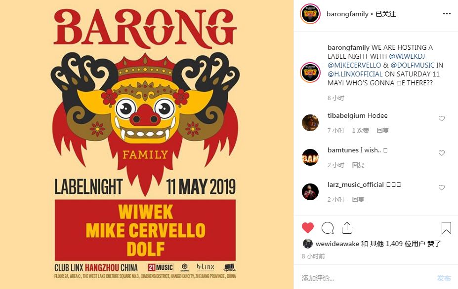 这是一起来之不易的合作,与一般的Booking有较大区别。H.Linx通过与Barong Family长时间洽谈,终于取得了与Barong Family长期合作,成为“官方指定夜店”的机会。Barong Family更在5月5日宣告了他们最新主办的Label Night的消息。