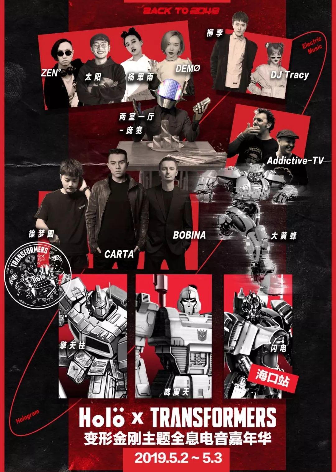 2019年5月2日至5月3日,中国活动主办方与变形金刚美国官方首次合作,呈现一场HOLO FESTIVAL变形金刚主题全息电音嘉年华,这可能是国际大型IP——变形金刚首次跨界至电音领域,象征着“全民派对时代”的又一脚印。
