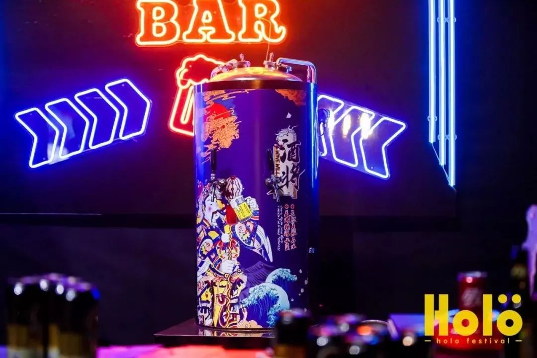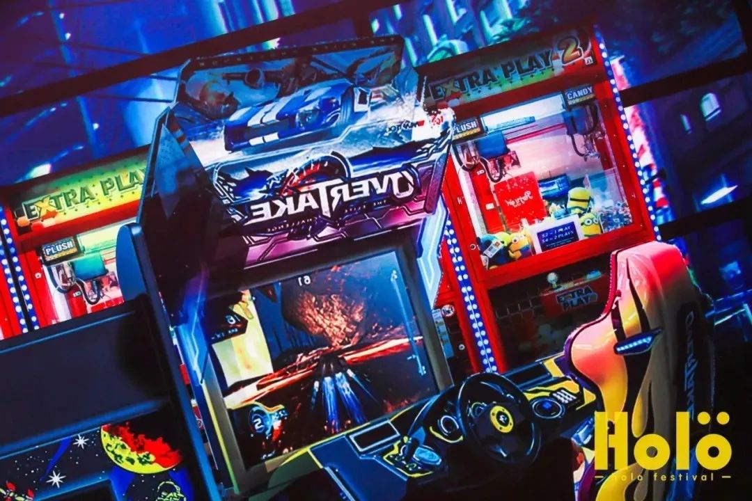 海口观澜湖华谊冯小刚电影公社1号摄影棚是本次派对的进行地,主办方在近一万平米的Warehouse空场地搭建了一次不同的视听现场,但户外场地同样属于他们的会场布置范围。星座占卜、水枪游戏、游戏机与实体桌游、涂鸦墙、美食、吧台、商品销售区、官方周边……无一不使嘉年华的完整性得到了保障。