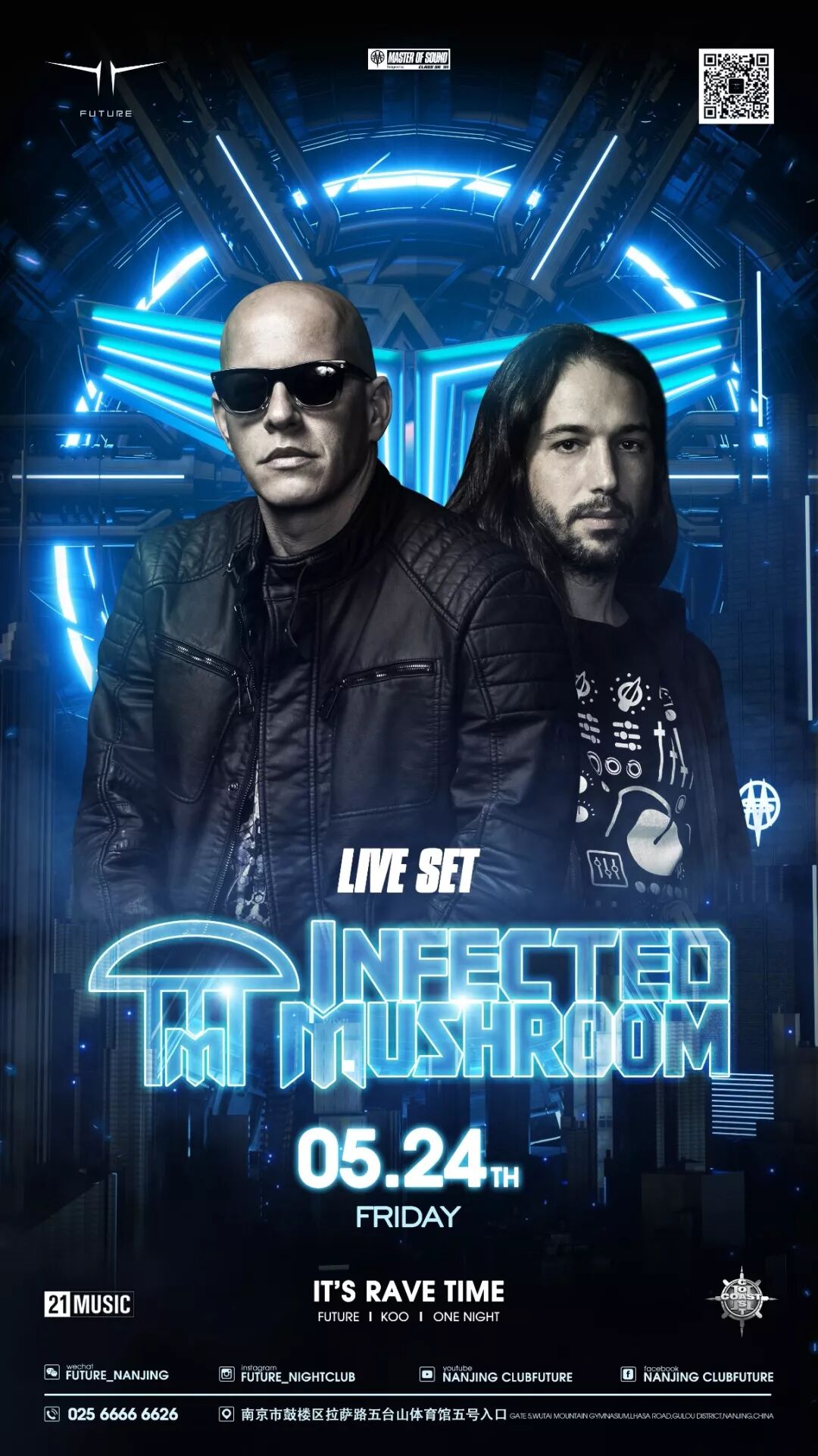 Infected Mushroom:Infected Mushroom将作为CLUB FUTURE当天主厅的Headliners之一。他们被认为是以色列最好的音乐组合,以及全世界的Psy-Trance代表双人组之一。自2016年组建至今,他们为Psy-Trance和其它多种电子音乐做出了巨大贡献,是Trance领域无人不晓的名字。