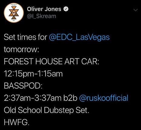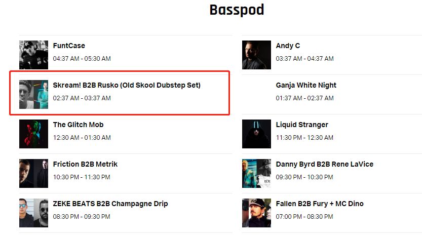 宣传发生在2019年3月28日,但今年的EDC拉斯维加斯站是在美国时间2019年5月17日至5月19日,Skream B2B Rusko的大故事发生在其中的5月17日。在本次宣传中,EDC拉斯维加斯站为Skream B2B Rusko加上了Old Skool Dubstep Set的括号标注。
