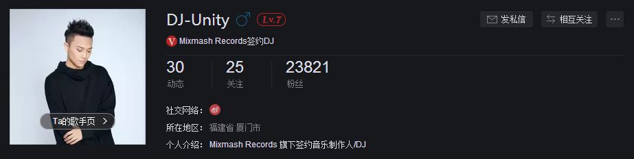 通过六年时间,Unity的知名度自厦门出发,到福建,再到全国,而现在他又将步伐迈向了其它国家以及努力走向全世界。两年前,Unity签约了Laidback Luke的EDM厂牌Mixmash Records,获得了ADE/Sensation/IMS Asia等线下活动的表演或发言机会。