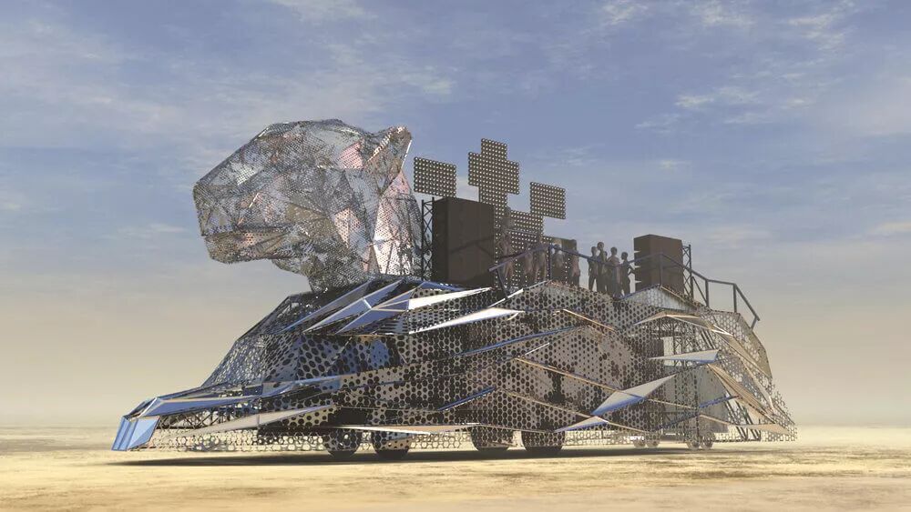 艺术实物创造者们将在火人节展示作品当成最终幻想,许多人奉献出几年乃至几十年的收入,只为了让自己的艺术思维变成乌托邦的一部分,在这里发生的一切都很“奇怪”。而今年,堪称天堂幻境的火人节将出现更多Made in China的艺术装置、建筑物。