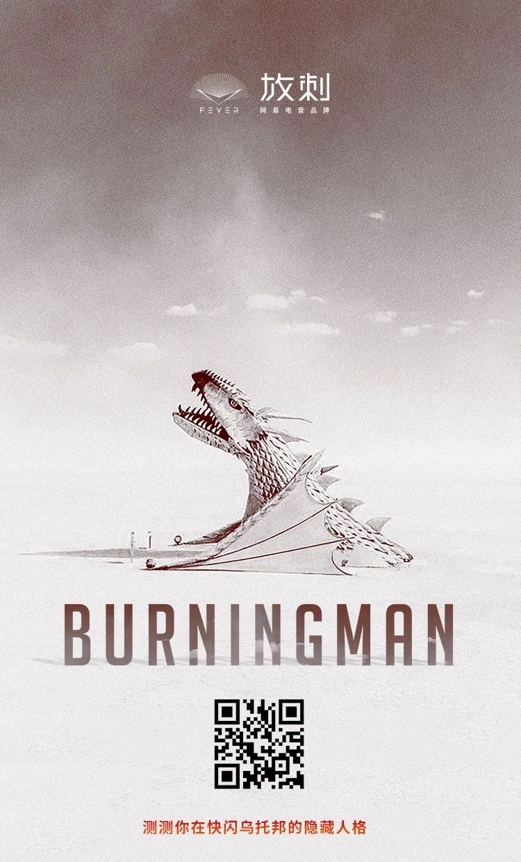 火人节与乌托邦?沙漠反现实生活状态?八日临时城市?艺术装置与建筑物?“沦为”冰山一角的不限跳舞音乐的多曲风艺人表演?回归天然的派对?你与这一切究竟有多搭调?扫描下方二维码进入H5测试。