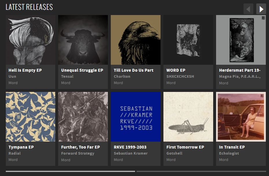 而在过去的六年内,Mord Records算是一个高产的厂牌,基本上每个月都会发布新的EP或者单曲,给予了全世界Techno艺人们更好的发展机会。在Discogs等实体唱片销售网站上,Mord Records的唱片销量虽算不上爆款,但四位数的数值还过意得去。