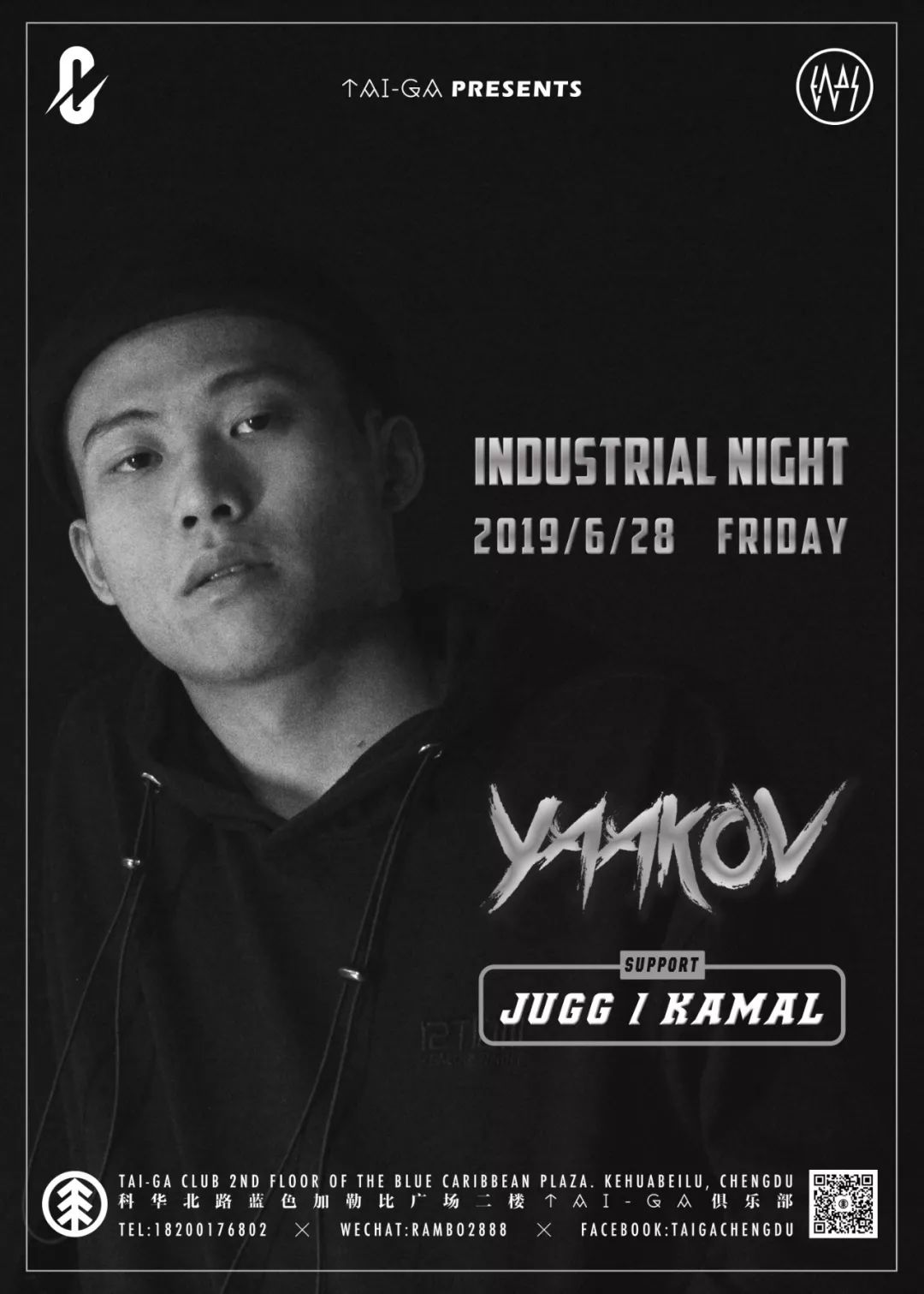 目前为止网易云音乐上粉丝最多的中国Techno制作人/唱片骑师——Yaakov,将在2019年6月28日首次空降TAI-GA Club演出,带来Industrial Techno/Hard Techno等类目的精选音乐和精湛的DJ Mix技术分享,期盼与成都的Techno爱好者或从业们建立联系。