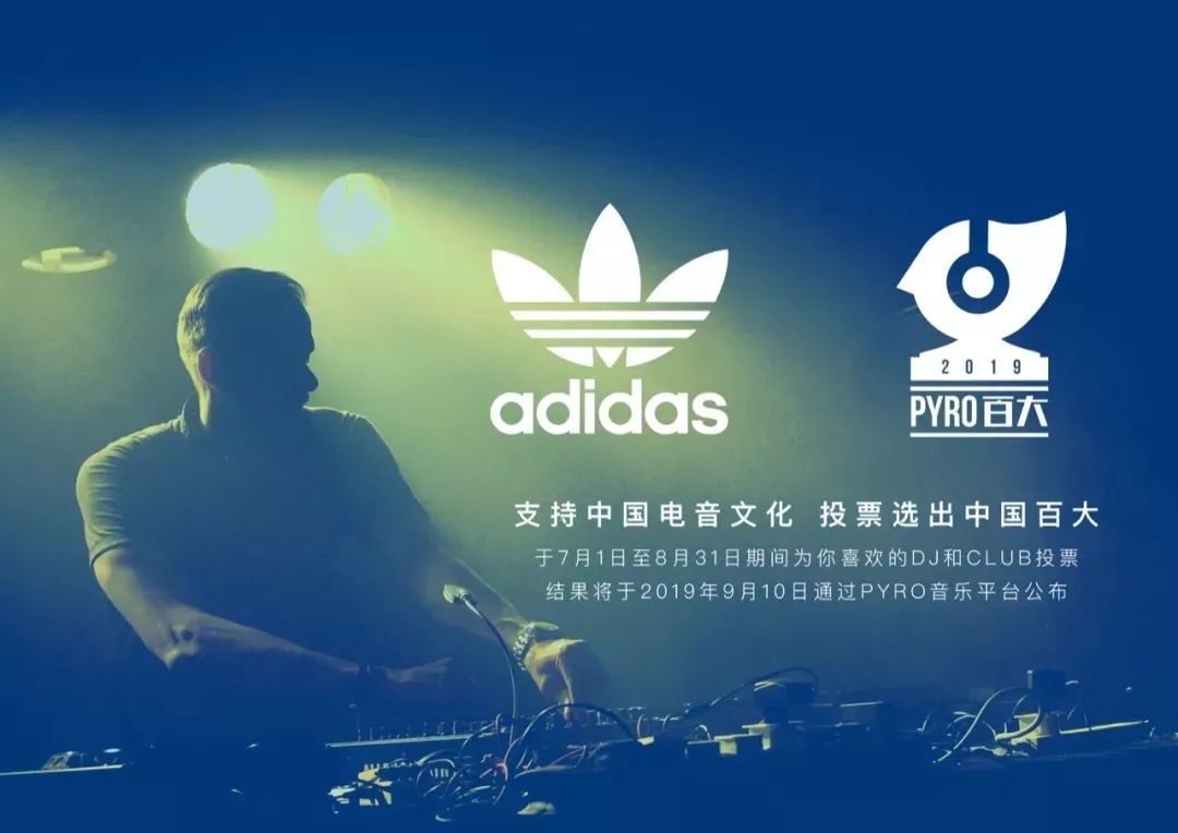 PYRO百大DJ与adidas Originals实现战略合作,获奖的DJ们会获得PYRO百大DJ所提供的adidas Originals产品支持。而PYRO团队还会在未来一年内为PYRO百大DJ接洽部分演出、负责部分Booking,这些演出会得到adidas Originals的赞助。