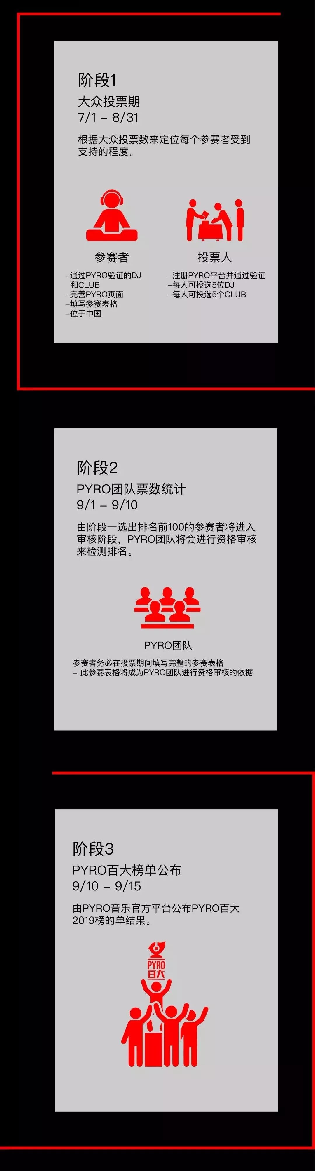 近期,音乐流媒体PYRO宣布PYRO百大DJ 2019即将启动,本次投票周期将长达60日,同时PYRO百大夜店排行榜也将启动。整个投票和得出结果的三大阶段分别设定为:参赛者报名→粉丝及支持者投票→统计投票→得出双榜单的投票结果。