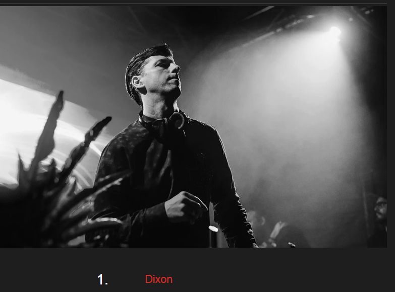 DIXON来自德国,早于1991,他就已经因为过人的DJing成为了柏林的明星DJ,并且带动了当时柏林的House Music审美,再将这股浪潮吹向全德国以及全欧洲、全世界。DIXON十分坚持于磨炼自己的DJ技术,且开始在多家名店成为每周驻场DJ。