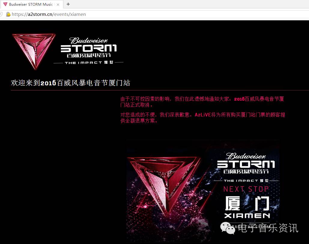 其实小编早就在自己的电音群说过这次就是五场,厦门站没戏。包括在百威英博发布会之后我发过文章,就认为这个新增的第六站没戏。因为五站是去年年底就决定的事,而突然飘出一个毫无准备的第六站,准备工作根本就没做好。但后来官方还真把这个消息放出来了,还真写了六站,而且还真的卖票了。小编也只好自认预料失败了。