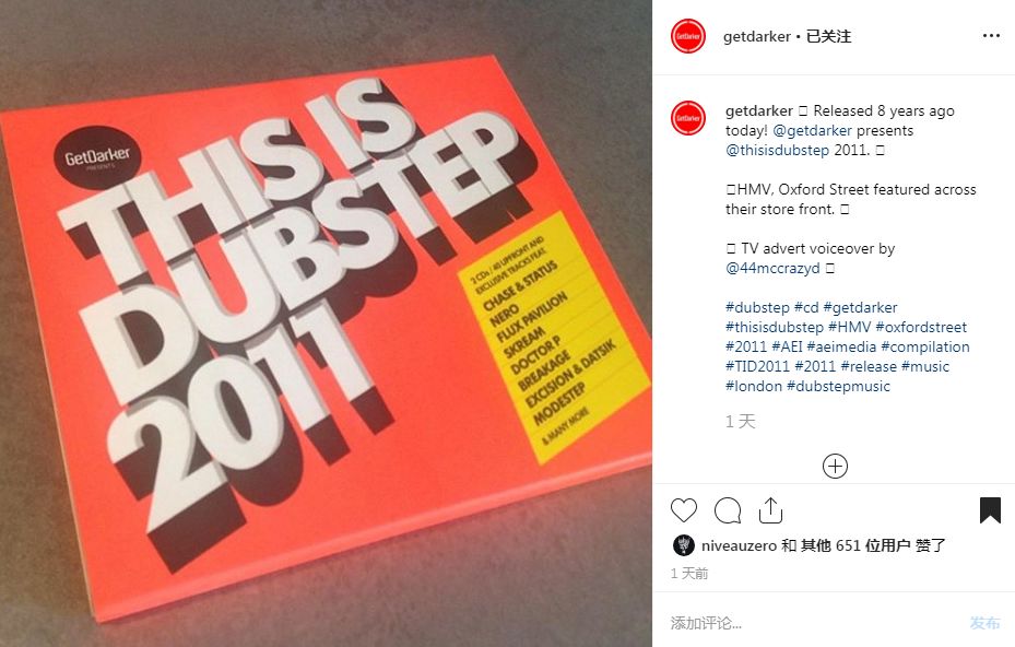 英国时间2011年6月27日,唱片厂牌及活动主办方GetDarker发布了红极一时的Dubstep合集《This Is Dubstep 2011》。按英国时间来算,昨天正好是《This Is Dubstep 2011》发布的八周年,其发行厂牌GetDarker在昨天发布了八周年消息。