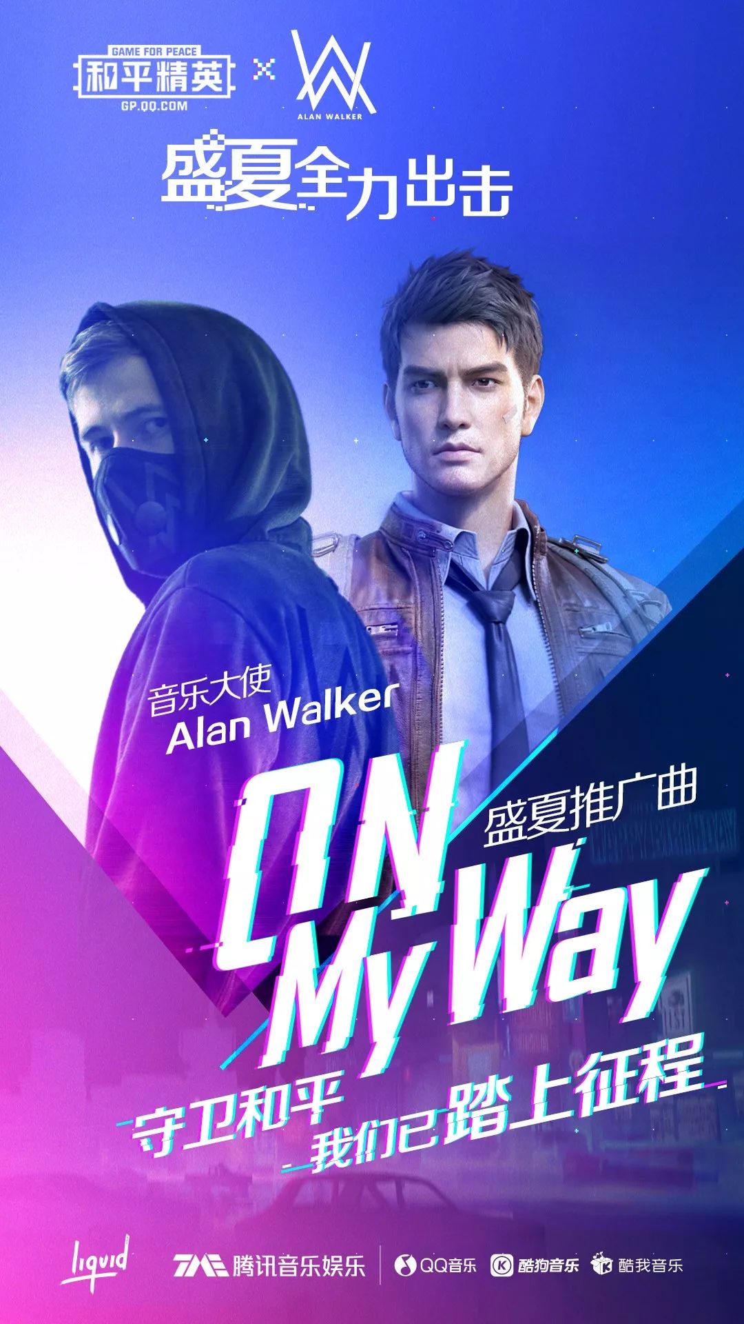 ⒈7月2日,Alan Walker《On My Way》作为手游《和平精英》的盛夏推广曲被应用至游戏大厅及车载音乐两个场景中。此前单曲《On My Way》在QQ音乐、酷狗音乐、酷我音乐三大平台一经亮相就广受欢迎。更让粉丝开心的是,作为手游《和平精英》的音乐大使,此次Alan Walker再度空降QQ音乐、酷狗音乐《On My Way》原版歌曲评论区&问答区,与粉丝零距离互动。