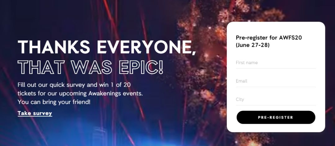 Techno脱离地下的束缚,在全世界变得热火朝天,一切都被记录在不同场景。尽管2019年的Awakenings Festival刚刚结束,但Awakenings Festival已经开启了2020年的宣传,并在官方启动购票预注册,发动有奖问卷调查,做明年的活动做足一整年准备。一切成功、一切精华,等待你挖掘,等待你补充。