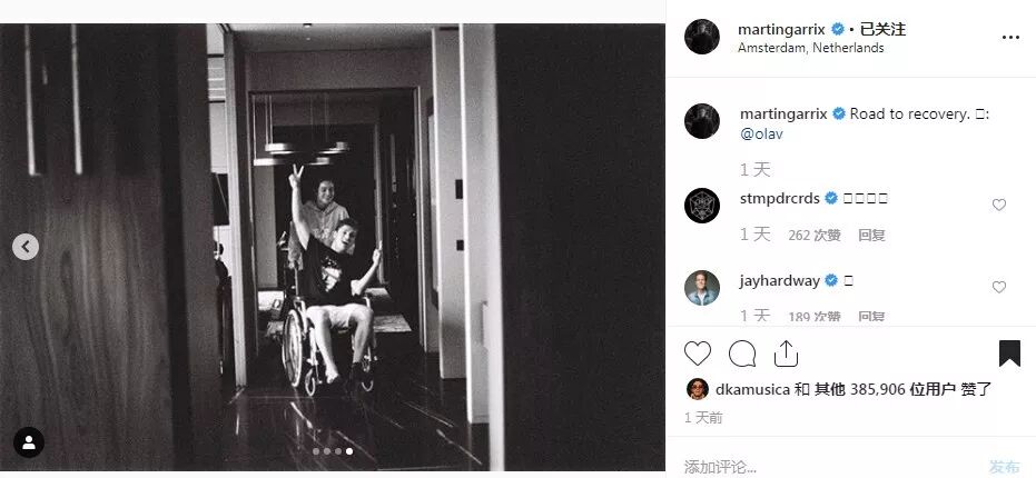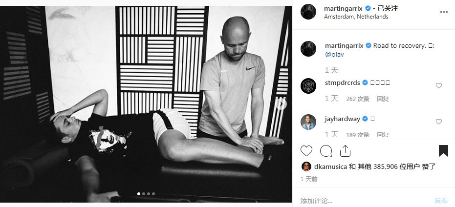 但好消息是Martin Garrix的手术不只十分顺利,且Garrix持续分享着脚踝康复的过程。就在昨天,Martin Garrix发布最新动态向他的粉丝展示了“恢复之路”,按摩师通过按摩的方式帮助他的脚踝更快康复,好朋友Olav/Menno Bark及他的女朋友Charelle都在陪伴着他。