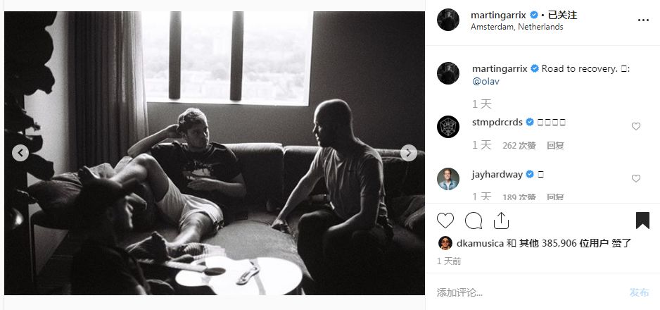 友人们各自有他们的工作,主要是音乐制作人、词曲作者、歌手、模特,且平时的档期都比较繁忙,但许多人还是抽空去看望了Martin Garrix,很多他们的粉丝崇拜他们之间的友谊,或为这些现象感到温暖。前不久,Martin Garrix声称很快便可以活蹦乱跳了。