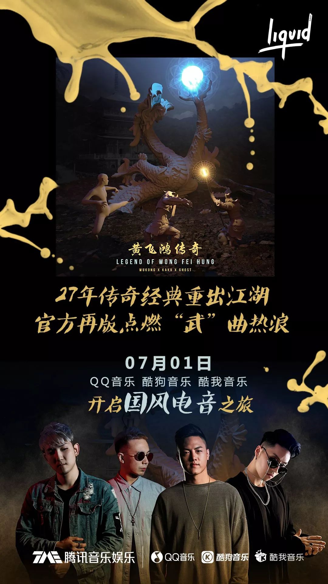 6月28日,Liquid State继CORSAK后迅速签下第二位华裔制作人WUKONG并发布签约后的首支单曲《黄飞鸿传奇》,该曲目为《男儿当自强》的舞曲Remix,是过去二十七年内唯一一支官方授权的Remix。据说WUKONG为获得《男儿当自强》原版授权大费周章,终得以成功。