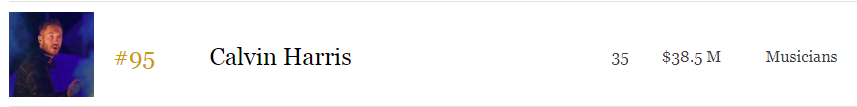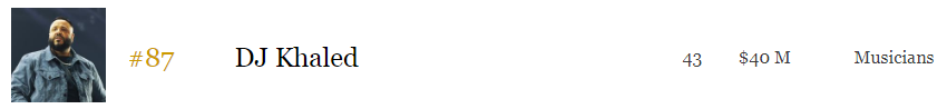 在2019年Forbes The World's Highest-Paid Celebrities【世界上收入最高的名人】榜单中,共有四个DJ/制作人名字脱颖而出,他们分别是The Chainsmokers/Marshmello/DJ Khaled/Calvin Harris,分别获得第67名、并列两位第87名、第95名的好成绩。