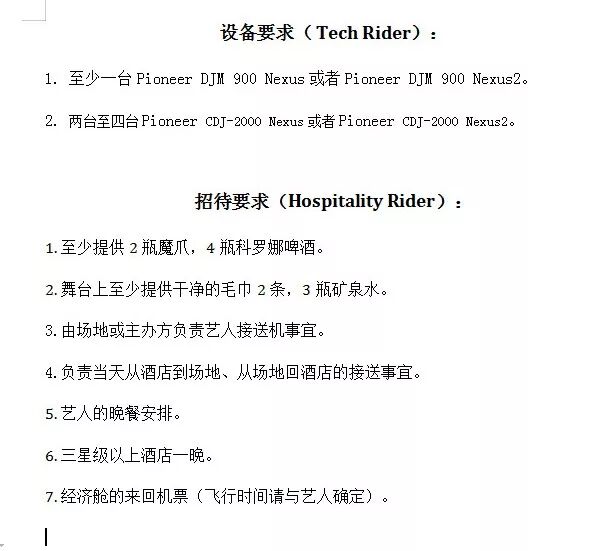 为了避免任何与实际情况相违背的事件发生,我们必须强调,“全包”这种概念在国际大牌DJ/制作人的世界里并不常见,国际艺人的报价多数情况下只分Landing和Not Landing。“全包”理论上单指差旅全包,落地后产生的费用是否自理没有明确标准。哪怕理解为“打包”,“打包的范围”也见仁见智。