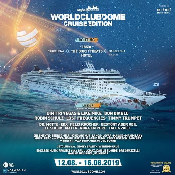 远近闻名的WORLD CLUB DOME正是BigCityBeats的旗下项目,在不同场景下,WORLD CLUB DOME可能是仓库派对,也可能是音乐节,甚至还可能是邮轮派对。正于2019年8月12日至16日,WORLD CLUB DOME开启了长达四天的邮轮之旅。