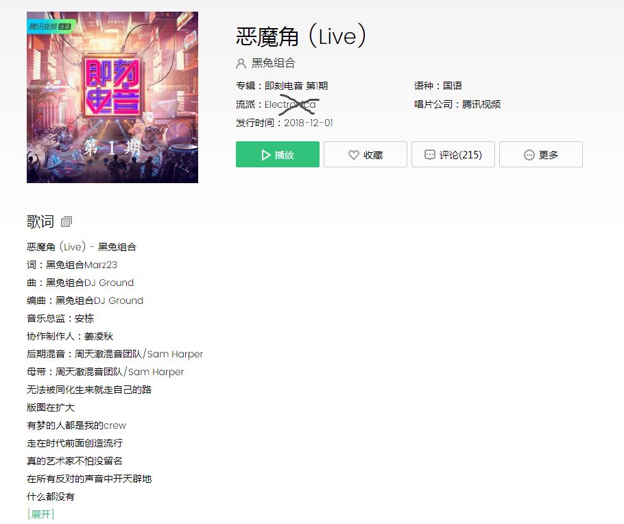 更劲爆的是,《恶魔角》其实是DJ GROUND在2017年发布的单曲《Blow Up This City》重新填词版。无论是原版或者节目上的重新填词版,按分类均属于Heavy Dubstep,又加入了Jersey Club的片段,但根本不是什么“加快版的Bass House的那种Techno”。