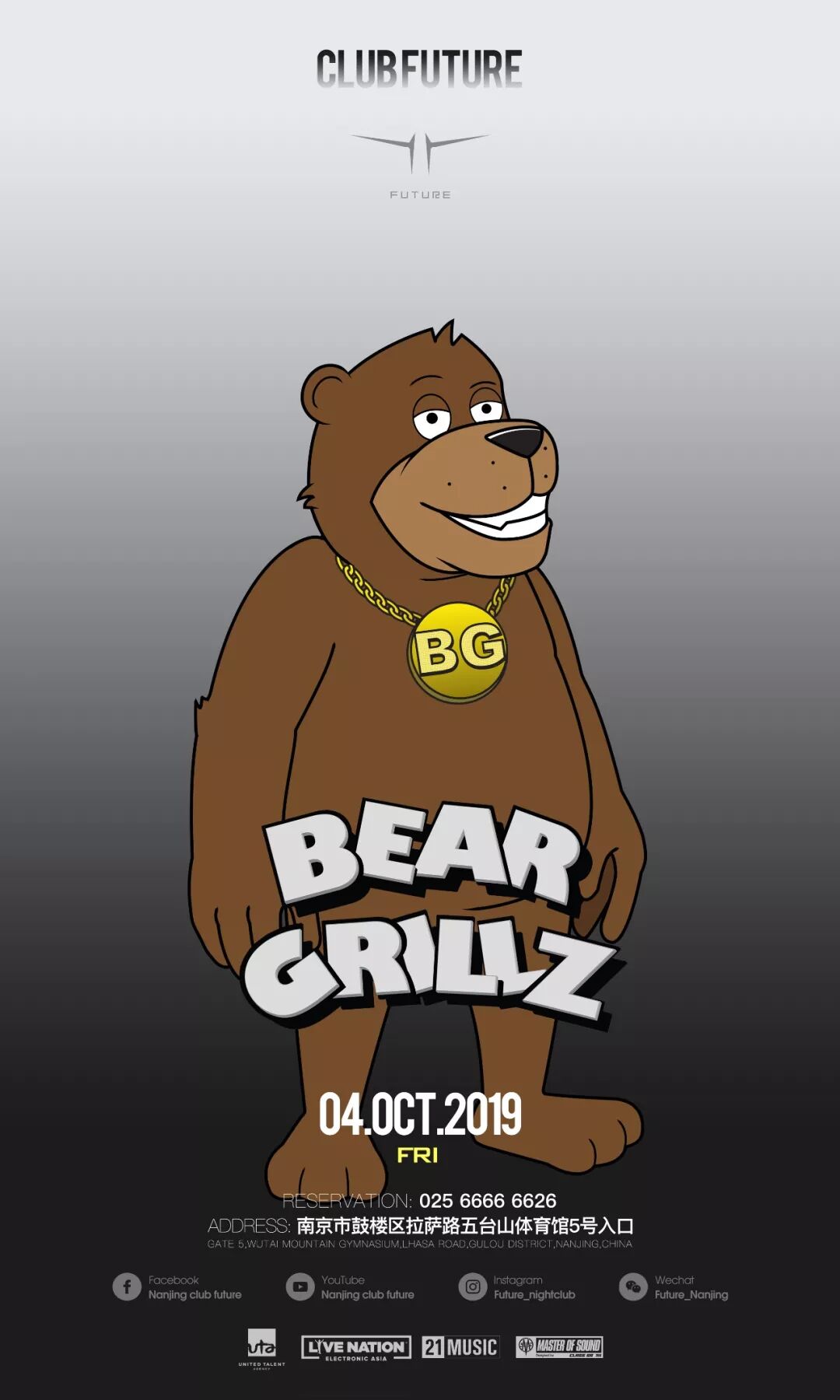 Bear Grillz:可能是中国最早出名的Dubstep/Trap艺人之一,早期可能是因为他的特殊卡通形象而被人熟知。尽管在线上获得了许多国内较早一批Dubstep的认可,但一直到近几年因Bass Music浪潮才开始被主办方和店方相中,迎来丰富的演出机会。