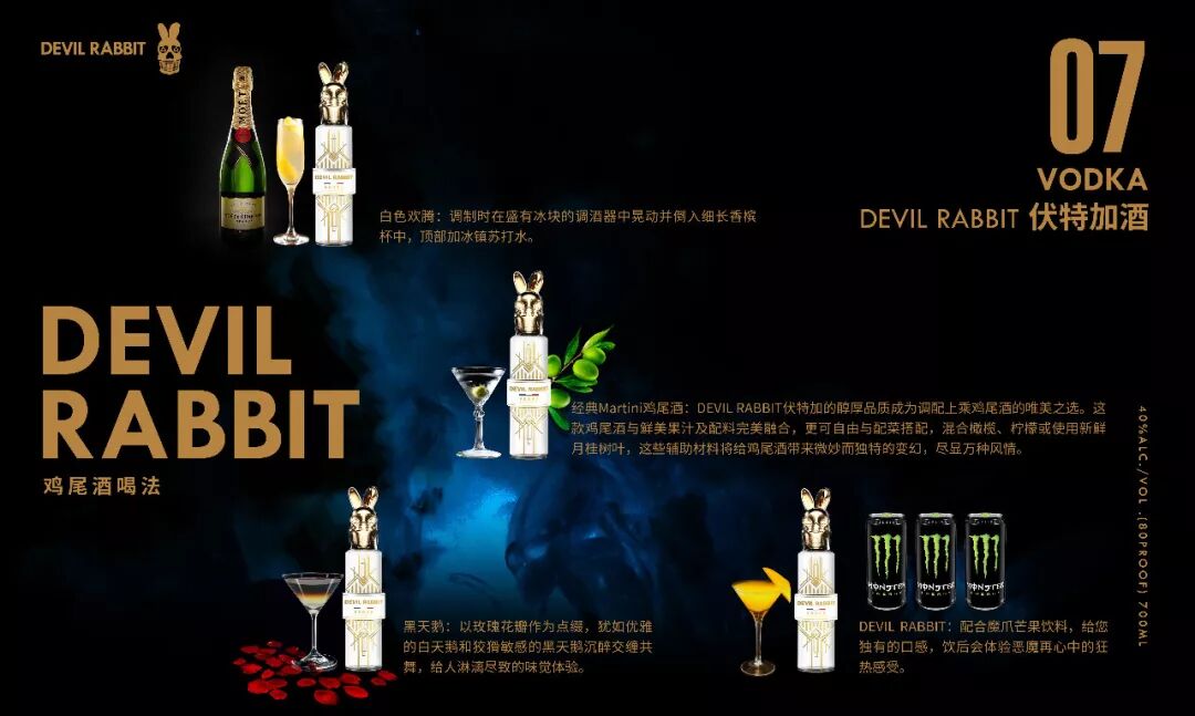 跨界主办方、艺人签约、夜店、活动赞助与酒水生产商的公司率先接手了这种使命,以更加New-School的形象和更精心的调配方式,研发并发售了一款正在DJs和Ravers的群体中流行化的酒水品牌——恶魔兔子,并喊出了“DJ圈里的酒”这句口号,树立招牌。之所以恶魔兔子被定义为“DJ圈里的酒”,极大可能性因为这款酒水在摩登家族的品牌调性和资源的辅佐下,很快随之掀起了“DJ们都爱喝、DJ们都消费”的品牌形象。关于恶魔兔子的宣传文章总是覆盖在国内众多DJ们的朋友圈内,成为“DJ圈里的刷屏事件”。当中国老牌DJ们带头引领一种几乎史无前例的病毒式营销案例后,其它DJ们也可能因此响应羊群效应理论,因从众心理而再度拔高恶魔兔子在从业DJ们的圈层不可限量的影响力。最终,恶魔兔子进一步证实了它的受众群体,并一步步左右着DJ们能够影响到的Ravers。终于,“DJ圈里的酒,恶魔兔子,正在流行”不再只是恶魔兔子的一句口号,而是成为了事实。这些率领着恶魔兔子风向的老牌DJ们成功联手与摩登家族发起了一张“恶魔兔子百大DJ”排行榜,组成评审阵容,在指定行业内名声大噪。但这张榜单又是另外的故事了,未完待续。
