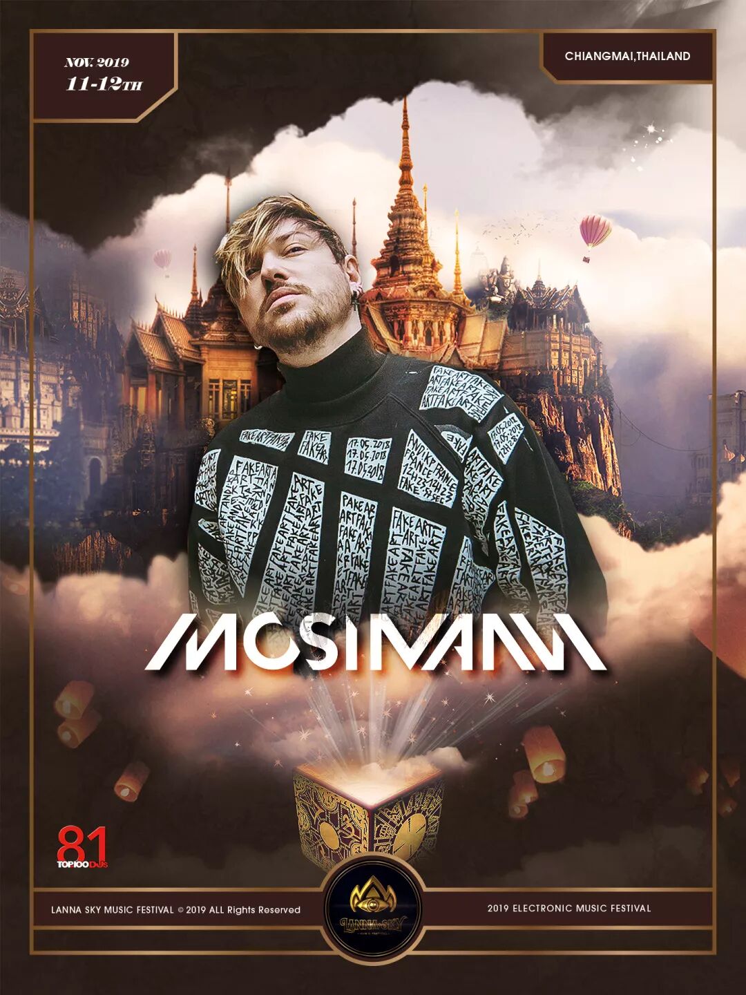近期,又有一个全新的泰国音乐节项目成功成为了亚洲Ravers的热议话题,它叫Lanna Sky Music Festival,通常被翻译为兰纳天灯音乐节或兰纳天空天灯音乐节。Lanna Sky Music Festival在短短几个月内吸引了上万亚洲各国音乐爱好者在社交媒体上关注。图片来自Lanna Sky Music Festival本届Lanna Sky Music Festival于近期官宣了前两波阵容,已揭晓的表演嘉宾有:亚裔法国籍、大画家毕加索的曾孙FLORIAN PICASSO;图片来自Lanna Sky Music Festival被主办方、夜店方誉为“小提琴女王”的EDM DJ/制作人MARIANA BO;图片来自Lanna Sky Music Festival乌克兰成长速度最快、尤其在DJ Mag百大DJ排行榜进步最快的OMNIA;图片来自Lanna Sky Music Festival高产的Ben Gold在派对城市Miami及Ibiza都有过丰富的巡演和驻场经历;图片来自Lanna Sky Music FestivalFerry Corsten横跨Trance与House,在21世纪初就已经成为巨星,当时的影响力于全球名列前茅;图片来自Lanna Sky Music Festival从综艺节目走出来且走红的DJ/制作人——MOSIMANN;图片来自Lanna Sky Music FestivalMARC VEDO以他标志性的UK House Music而著名;图片来自Lanna Sky Music Festival奇幻的是,SANDER VAN DOORN的音乐多次跨界地涉及着听似矛盾EDM/Techno/Trance/House,这次以他的小号PURPLE HAZE出没;图片来自Lanna Sky Music FestivalCHADDW CODE是长居在中国的白人与黑人双人组……图片来自Lanna Sky Music Festival