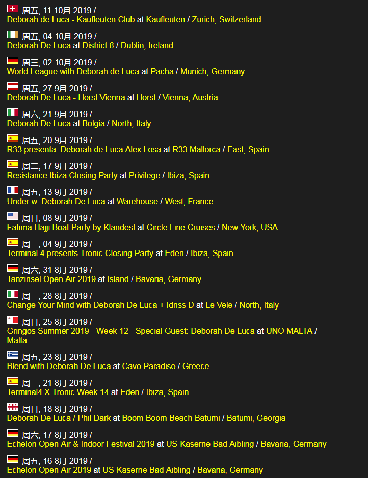 其实在当今的Techno市场中,Deborah De Luca已经算非常高产了,几乎每个月都有几首原创或者Remix/Bootleg/Edit释出在Beatport等流媒体上。之余以Deborah De Luca每个月出现在多座国家的巡演旅程为依据,都不难坐实她迎接着前所未有的活跃和曝光度。