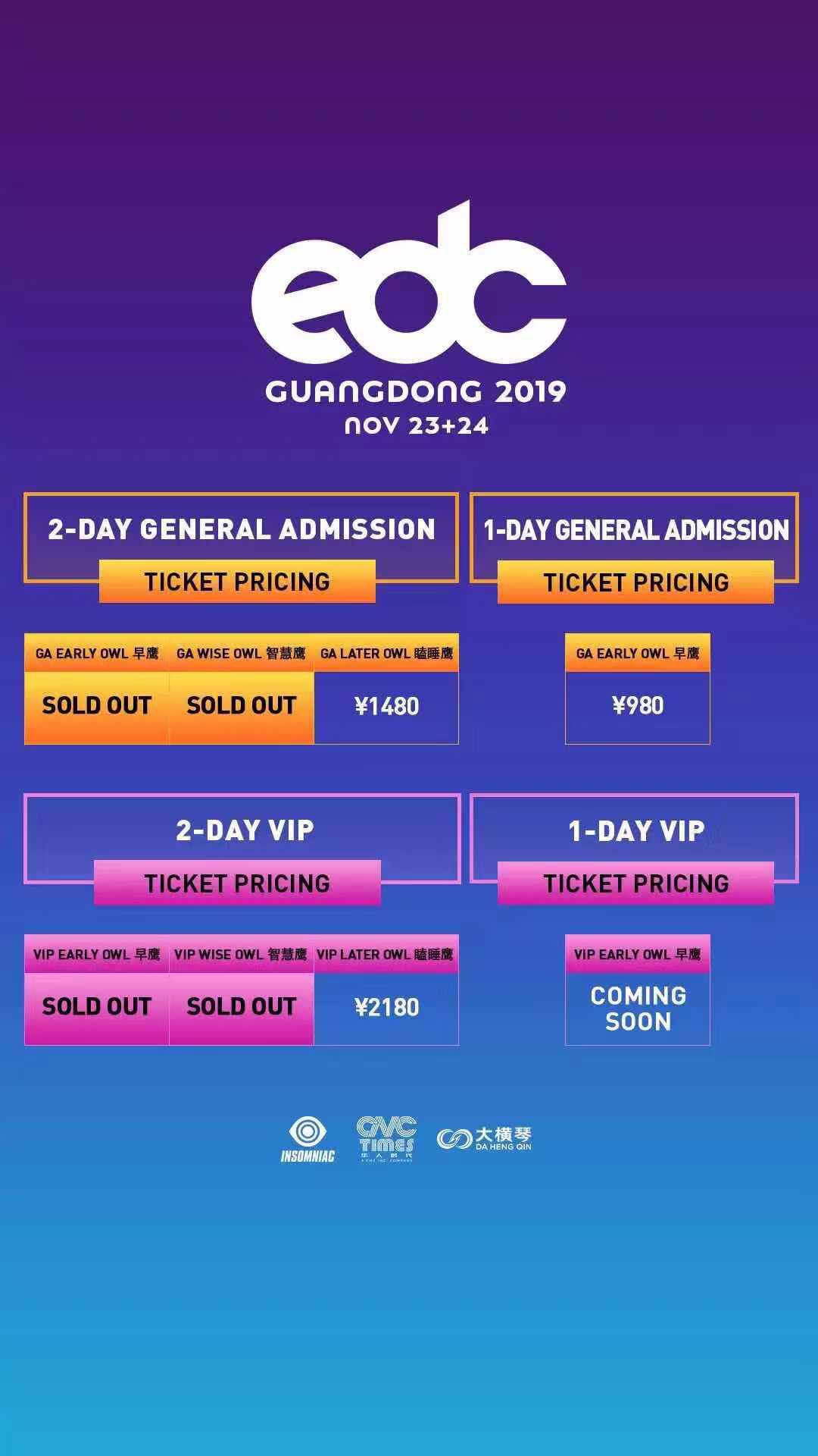 至于即将如期而至的EDC Guangdong,除了此前已推出的双日瞌睡鹰套票,EDC Guangdong又给予了Ravers另一项选择:GA早鹰单日票,现已火热开售。