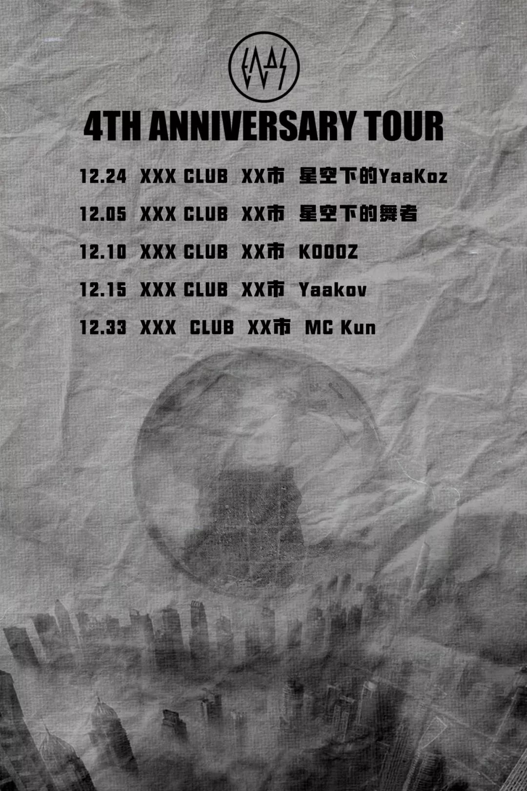 由于上述DJ/制作人的演出都将被列入巡演海报中,所以我们在整个巡演的推广中将为每一名艺人的每场活动做出平等的曝光。电子音乐资讯四周年巡演海报可参考许多国际艺人的巡演海报,但有别之处在于我们的这次海报设计是电子音乐资讯四周年巡演,并非个人巡演海报。是一种过去周年派对的再升级行为。