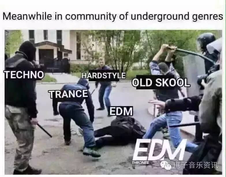 不过我还是要在最后补上一刀,对EDM的理解现在基本分为三类。一类是舞曲类电子音乐,其实就跟舞曲一词画上等号了,只不过大多数国人对舞曲的理解还是错误的(舞曲到底是什么音乐风格?刷新中国DJ行业20年错误认知。)。第二类是指商业电音,就有了地下电音党Fuck EDM这一情况,这里指的就是商业电音。第三类就是把EDM和Bigroom划等号的了。