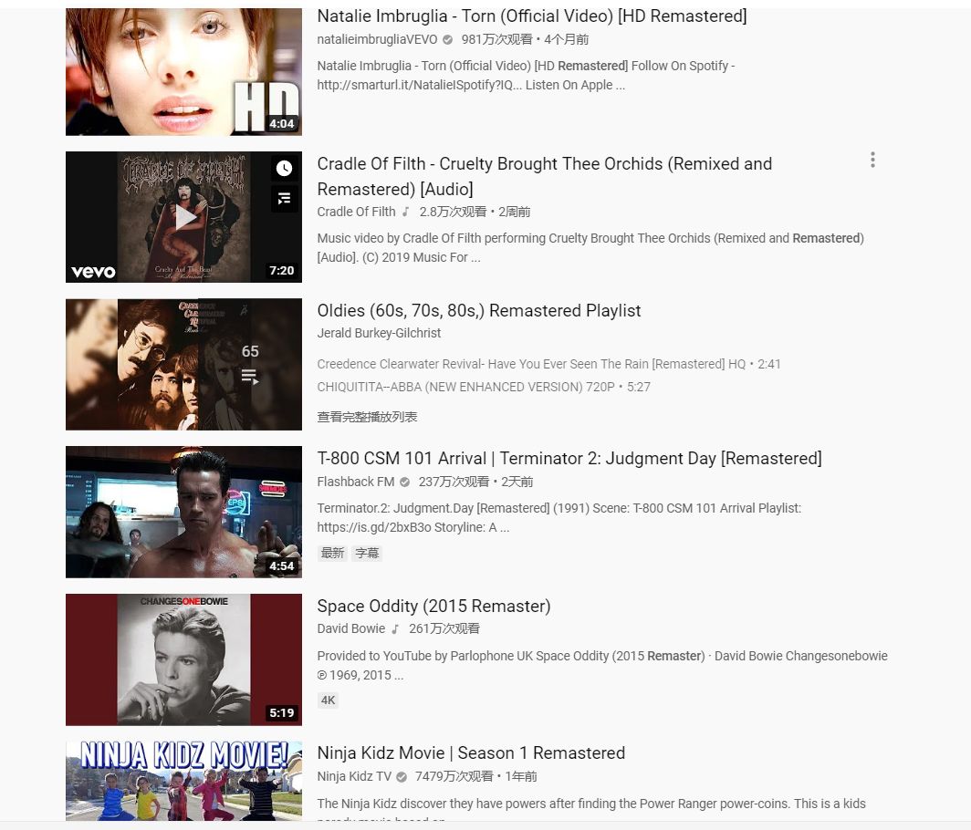 现在,我们可以在全球各大音乐流媒体平台上搜索“Remastered”,找到与Remastered相关的大量音乐。注意,它往往会作为歌曲名称的括号标注使用,例如《Minimal Bounce (Remastered)》或者《ACG NETLABEL TRACK (Remastered)》,以方便专业化辨识。