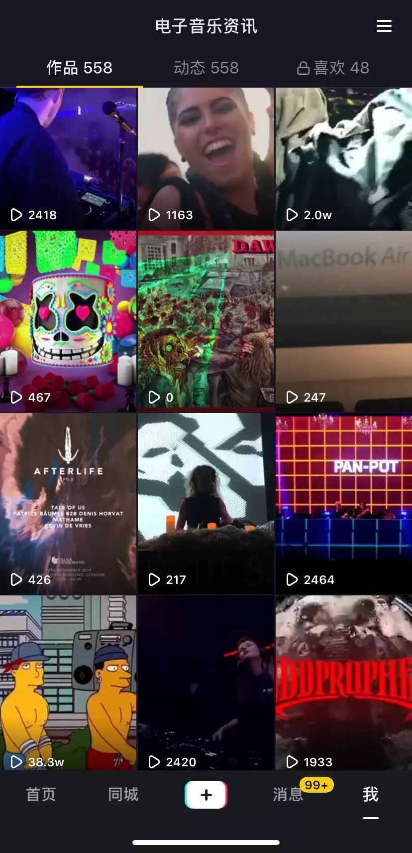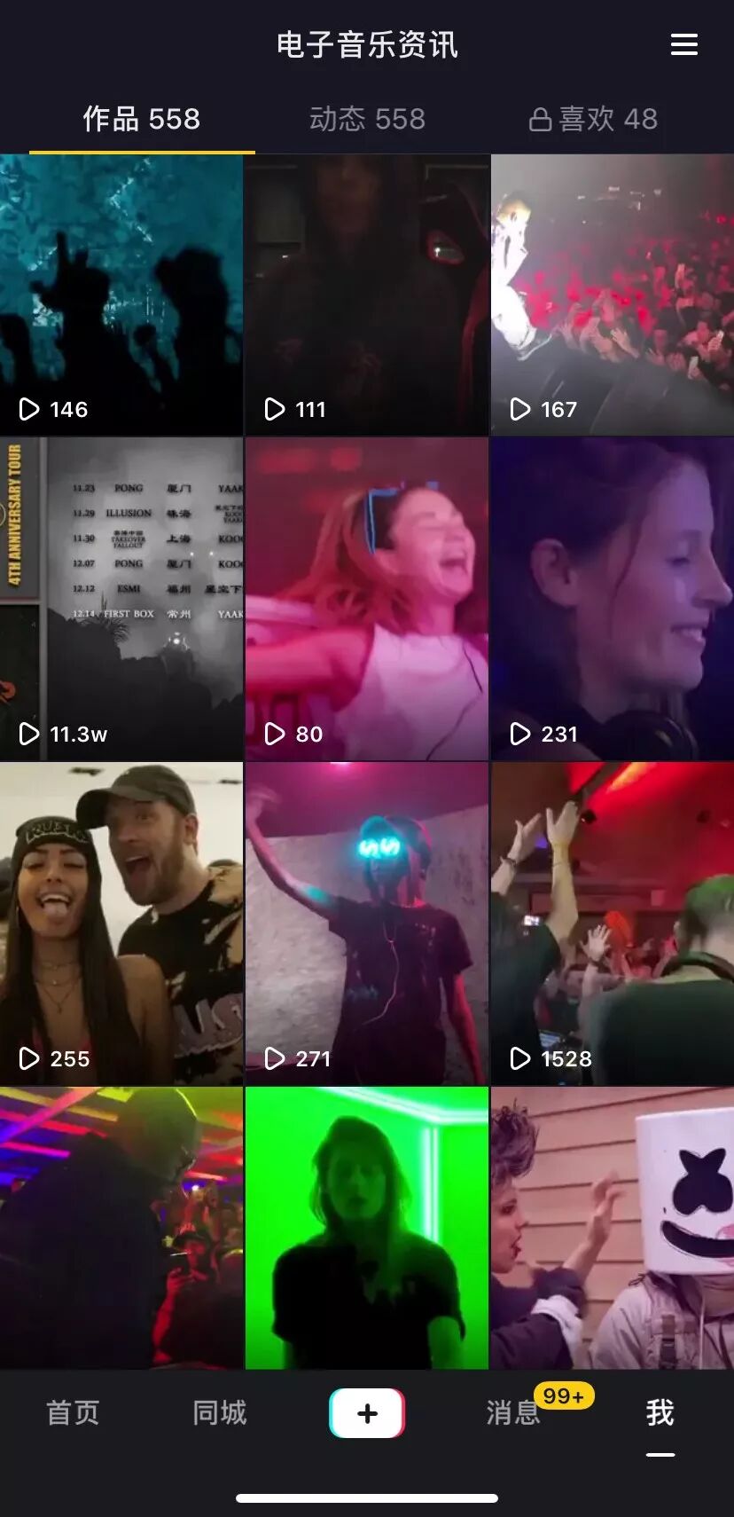 历时三个月试运营阶段(2019年9月4日到2019年12月8日),我们终于决定结束试运营,进入正式推广阶段,向粉丝群体公布这件事。在三个月期间,我们发布了558条搬运自Instagram等平台的优质电子音乐视频,大胆却先锋地将很多从前从未出现在抖音的DJ/制作人和曲风带到了抖音。