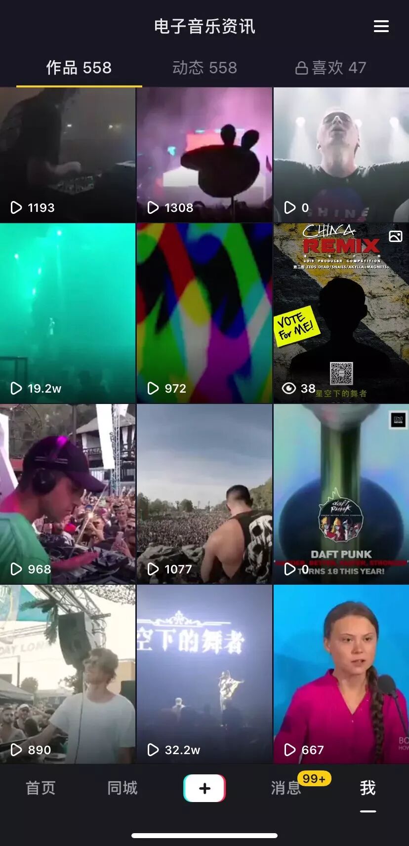 不以任何俗套的方式去迎合抖音的市场,《电子音乐资讯》选定了独有的路线,分享那些精选的全球电子音乐视频。在这过程中,有不少电子音乐乐迷发现了抖音的新窗口,这片被拒绝承认的废弃工厂,实际上有着许多可开发的资源,我们的正事正是正确引导他们。