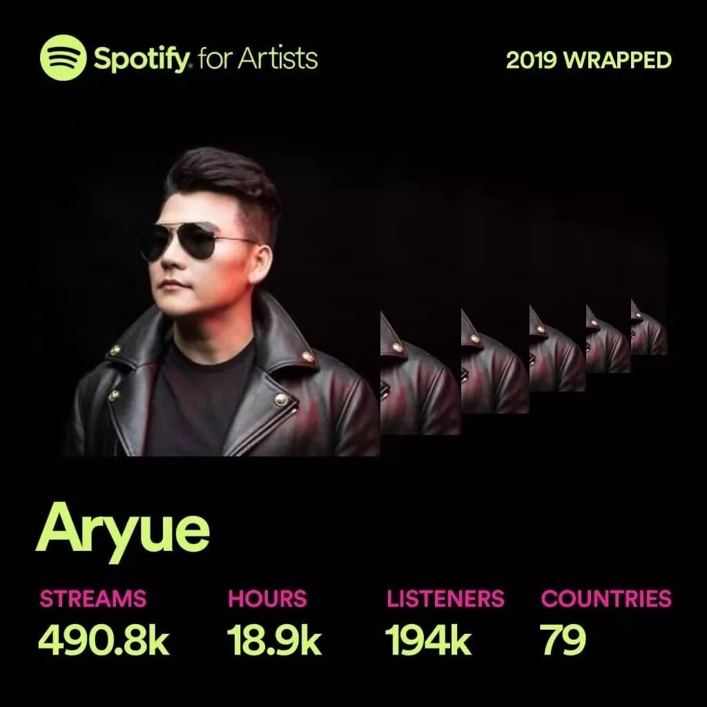 经历过多次国际上大大小小的厂牌合作,Aryue郑越在Spotify上取得了国际化的数据成绩。