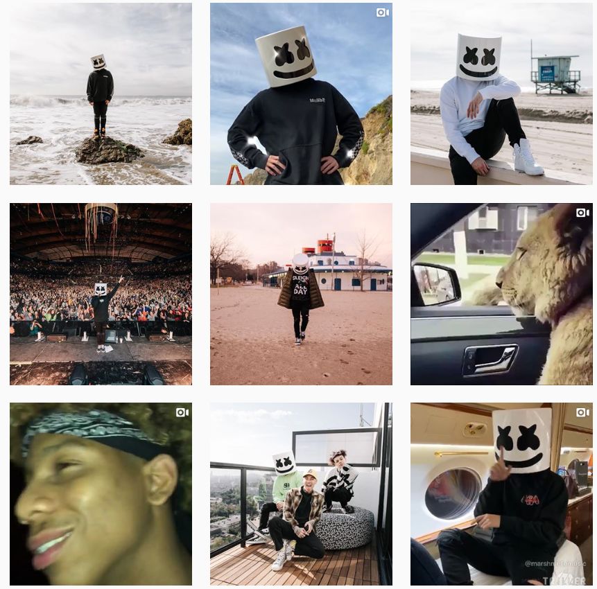 在美国这个Instagram Model发源地,还有一个在短短几年内吸粉数千万的大名鼎鼎的DJ/制作人,是你或爱或恨的Marshmello。虽然在中国他很少被戏称为网红,但在美国的音乐圈,大众都习惯将他列入Instagram Model的列表,甚至被当成了一大代表人物。