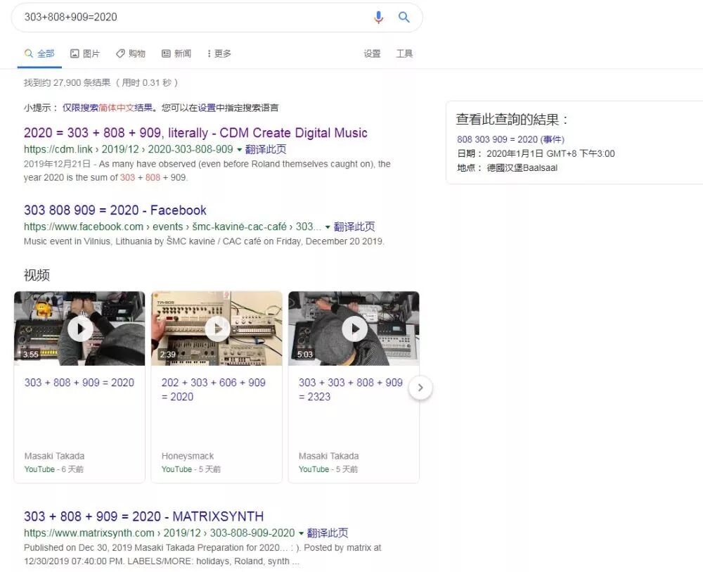 若再使用搜索引擎或国际化社交媒体检索关于“303+808+909=2020”的更多信息,也的确找不到早过2019年12月21日的新闻。换而言之,“303+808+909=2020”的算式在2019年12月21日诞生的那一刻起就已经名声大噪了。