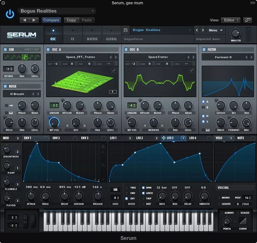 开创性的可视化波表更是一举打破了传统软件合成器黑盒式的调制逻辑,使得用户可以清楚直接地看到和听到波在调制时的变化。如此强大的合成器可以说是十分适合新手用来入门了,在本系列文章中,笔者会详细且深入地带领各位读者去认识和学习Serum合成器。