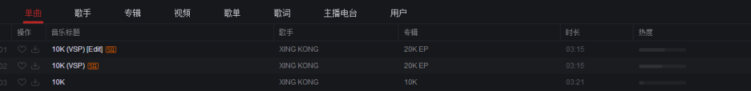 而《10K (VSP)》是接下来《20K EP》中的另一个“进化版”,《10K (VSP) [Edit]》则是最近活动中的版本,详见——《有奖竞猜 发现这两个版本的区别即有机会获得奖金》,事实上XING KONG还曾经发布过一个主Bass融合度更高的《10K (早期版本)》。