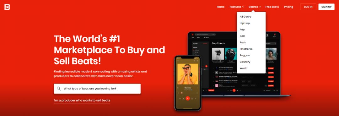 BeatStars的主要功能是Buy Beats(买-Beats)和Sell Beats(卖-Beats),并将Hip-Hop/R&B/Pop/Reggae/Country/World及以EDM占上架多数的Electronic作为网站的分类。Rappers可以考虑在这里购买Beats,制作人们也可以在这里销售你做的Beats,这是一个很好的机会,毕竟这年头的Beats只有不到5%不电子。