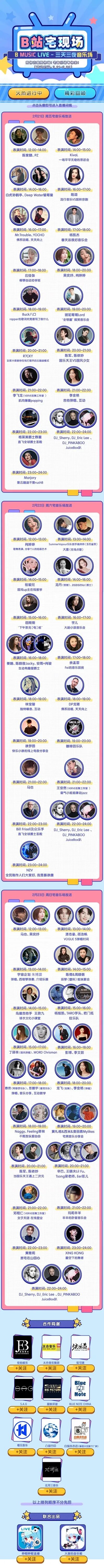 除了抖音上的夜店直播外,被称作“二次元和孩子们的乐园”的视频平台bilibili也于2020年2月21日至2020年2月23日开启了长达三天的「B站宅现场」音乐现场直播活动。本次直播由B站官方品牌哔哩哔哩直播联手看见音乐等知名品牌共同发起,属bilibili官方活动。