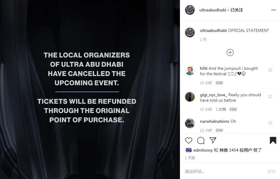 站在媒体角度,我们很遗憾地通知各位,疫情正在对全球的音乐节产业造成威胁,因而取消的音乐节现已包含但不限于Ultra Miami/Ultra Abu Dhabi/Tomorrowland Winter/S2O/Daydream Japan/SXSW/Calle Ocho Music Festival/Edinburgh International Harp Festival。