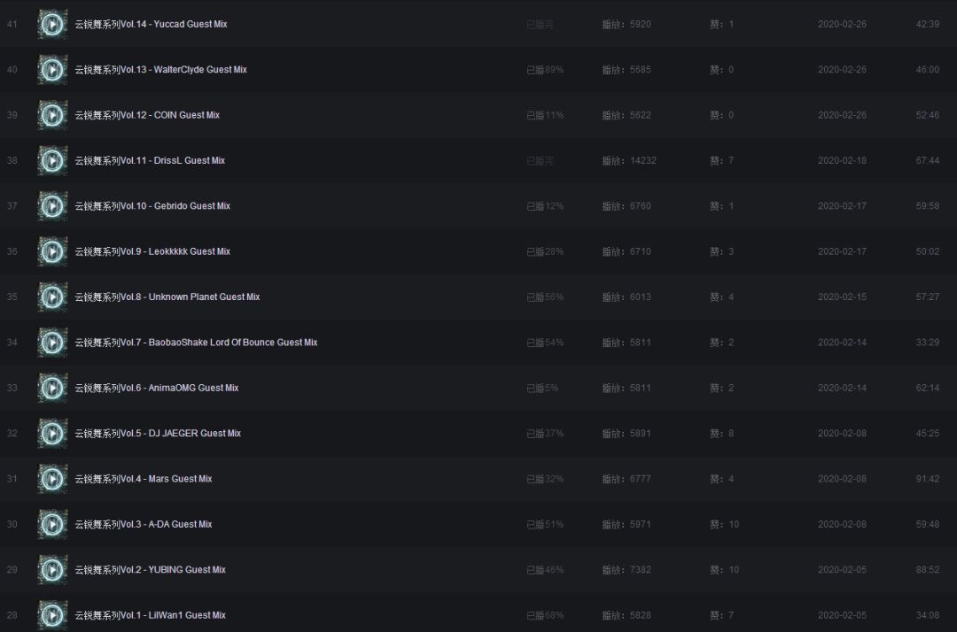 云锐舞系列Vol.16 - DJYuu Guest Mix:DJYuu是一位兴趣使然的DJ/制作人,但更多时候他是一名在校大学生,也希望能够在毕业后成为职业DJ/制作人。短短33分45秒内,这名嘉宾DJ混合了28首曲目,涵盖EDM/Future House/Bass House/Big Room House等流派。