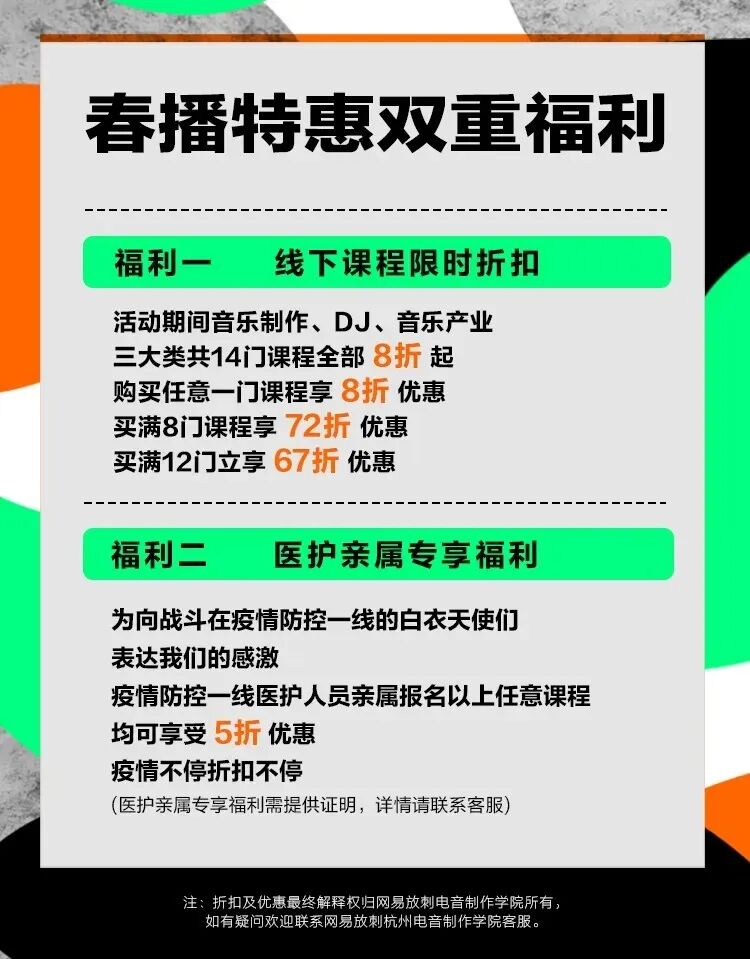 ⑶ 医护人员亲属特殊折扣:不一定每个人都能够直接地向医护人员表示感激,但网易放刺电音制作学院给予了这些白衣天使的家属们特殊的情感表示方式。