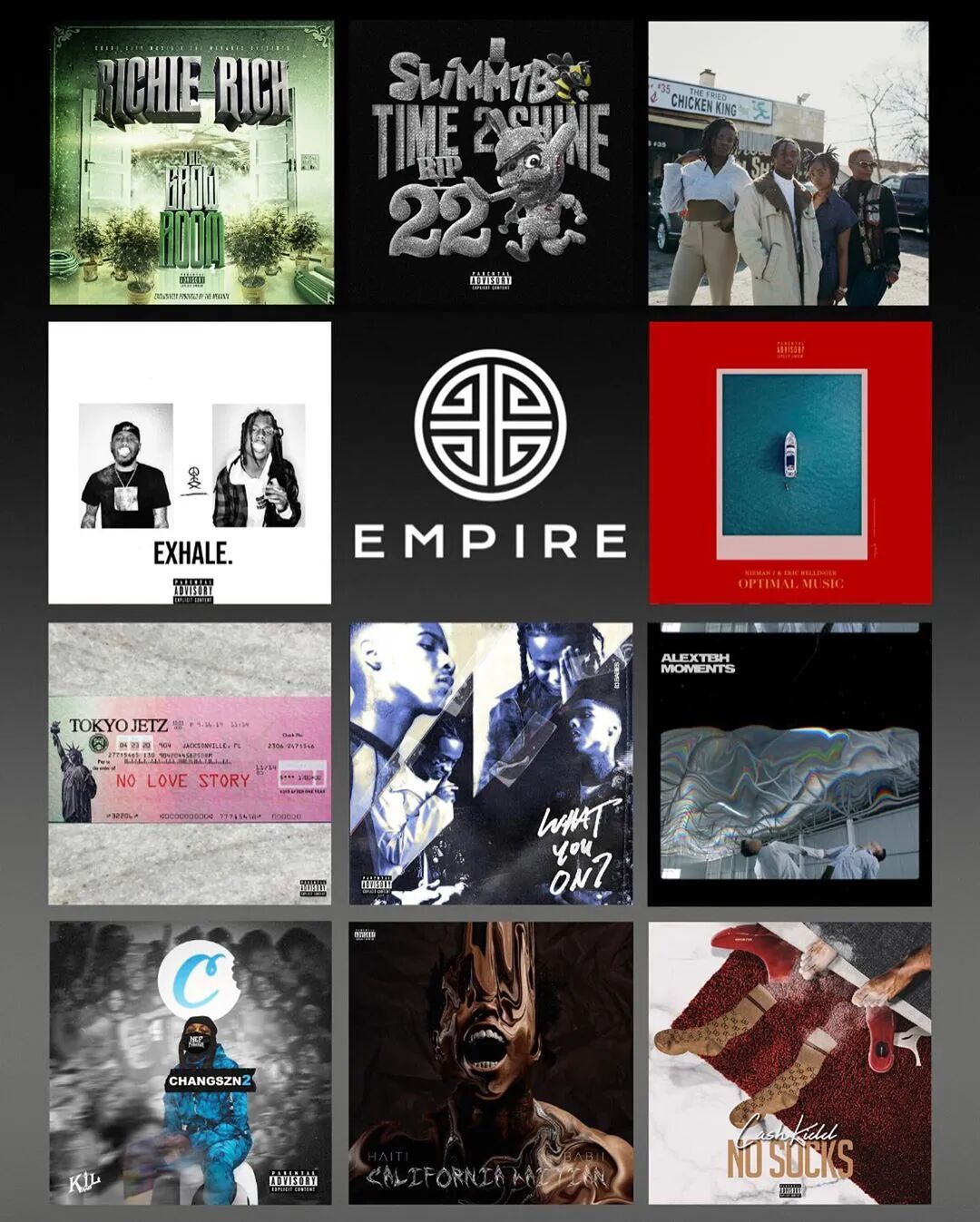 不仅与许多Rapper有过唱片发布约的合作,他们还与不少美国领衔的嘻哈厂牌、雷鬼厂牌、R&B厂牌建立着出版、分发合作关系。在数字唱片之余,EMPIRE的分发业务还涉及CD和黑胶唱片,他们为部分音乐生产实体唱片分发到美国各地的传统唱片店进行销售。