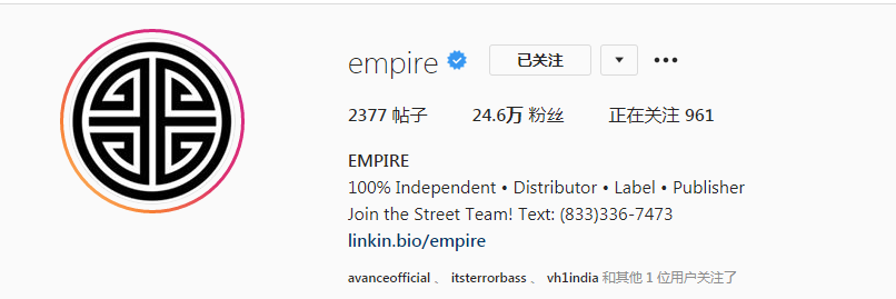作为一家独立公司,EMPIRE不仅是一家唱片厂牌,还是一家分发商(Distributor)和出版商(Publisher),由Ghazi Shami在2010年建立,总公司位于加利福尼亚州旧金山。此外,EMPIRE还在亚特兰大、纽约、伦敦均设有分公司。甚至,他们还和人才们建立艺人约。