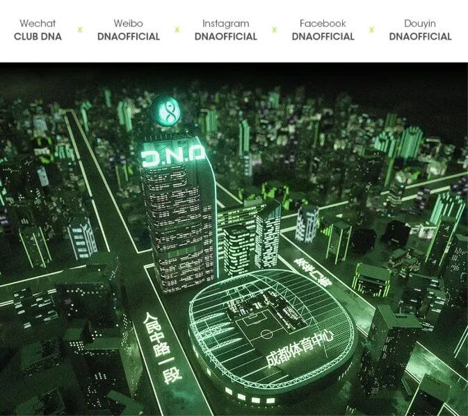 CLUB DNA精通且采取数字化、科技化、赛博朋克、未来感、未来机械等画风为展示风格,将其视觉团队的理念连接线上宣传与线下体验,甚至转化为品牌周边。另一方面,CLUB DNA还力邀荷兰一流舞美公司250K落地亲为,协助将3D雕塑视觉应用到真实的线下场景。